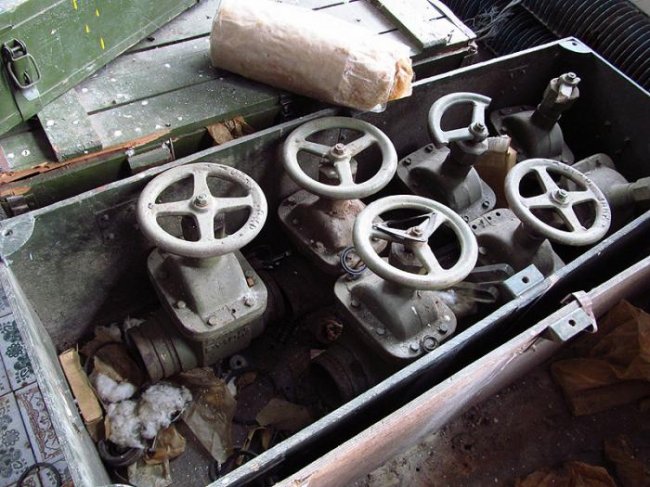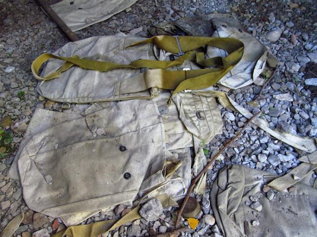 Кое-где на полу в помещениях валяются сумки для противогазов.