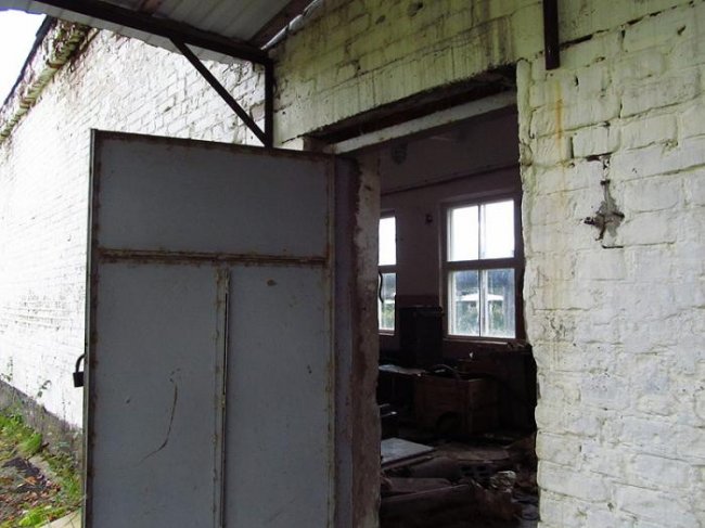 Что-то вроде котельной. Характерно, что в этом здании не выбито ни единого стекла, дверь заперта на замок, как и многие другие двери на территории.