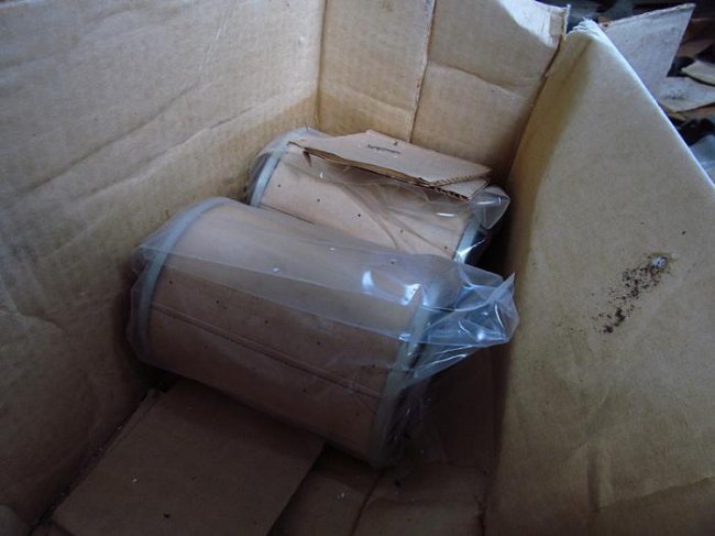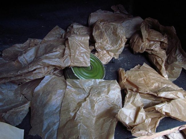 В груде замасленной бумаги обнаружился фильтр для противогаза.