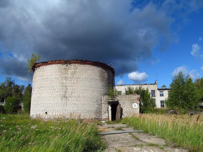 За резервуарами виднеется здание казармы. Запертое и с абсолютно целыми стёклами. Менять статус-кво казармы мы с товарищем посчитали излишним. Таблички «вход запрещён» на границах территории отсутствуют, но и приглашений чувствовать себя как дома мы особо не заметили.