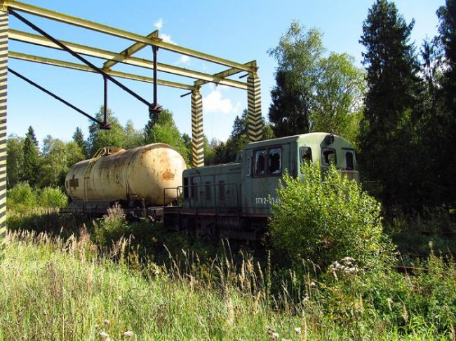 На путях стоит несколько цистерн. Судя по состоянию рельсов — уже не первый год.