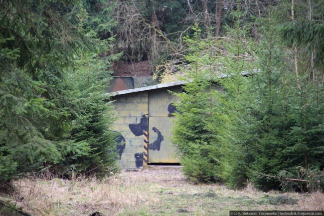 24. Подобные хранилища строились в Восточной Европе во второй половине 1960-х годов по типичному проекту и имели одинаковое устройство, хоть и отличались установленным оборудованием. Каждый подобный объект располагал двумя одинаковыми бункерами, каждый из которых мог принять до 60 ядерных боеголовок. В Яворе 51 таких бункеров-хранилищ тоже два, но для посетителей доступен лишь один. Второй расположен в трех сотнях метрах от первого и путь к нему перегорожен запретительной лентой. Так он выглядит со стороны. На переднем плане видна пристройка к бункеру, в которой находится погрузочная рампа, где происходила перегрузка «особых изделий» из грузовиков в хранилище и обратно.