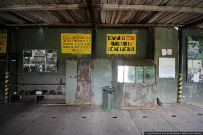 26. Так выглядит изнутри пристройка, в которой боеголовки перегружались с бортов военных грузовиков внутрь хранилища. На стенах сохранились оригинальные советские надписи.
