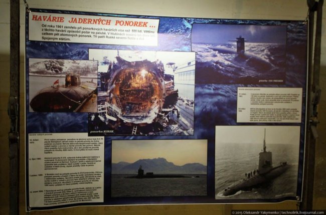 46. Отдельный банер содержит информацию об авариях на ядерных подводных лодках.