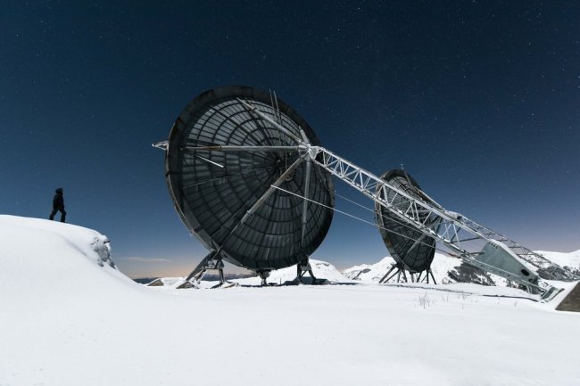 «После почти трех часов ходьбы по снегу глубиной 50 см, мы достигли этих огромных замороженных антенн. Полная луна, чистое небо, и кругом снег: просто невероятная атмосфера»