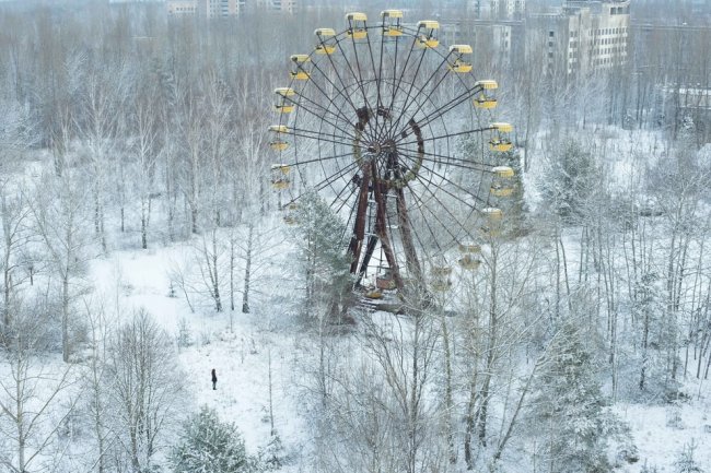 «Я спросил себя, как я могу запечатлеть знаменитое колесо обозрения в Припяти с нового и оригинального ракурса. Моя мечта о снеге была исполнена, он создал мечтательную атмосферу, которая полностью изменила Припять. С крыши дома мне удалось сделать нужный снимок»