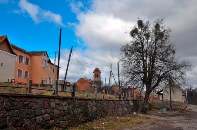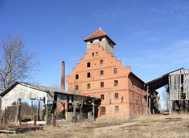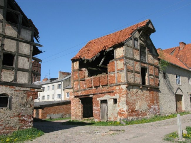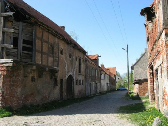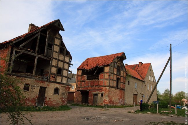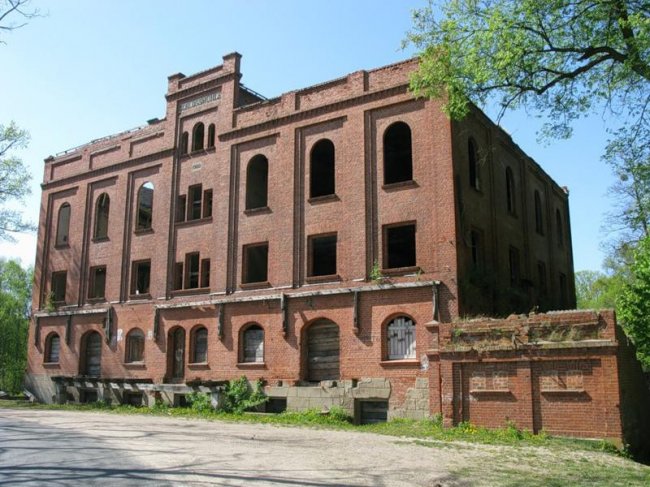 Сейчас в полуразрушенном здании Кирхе разместился гараж.