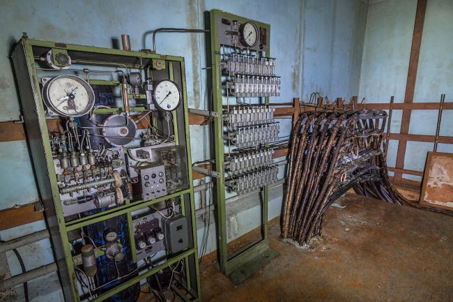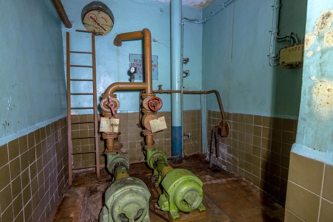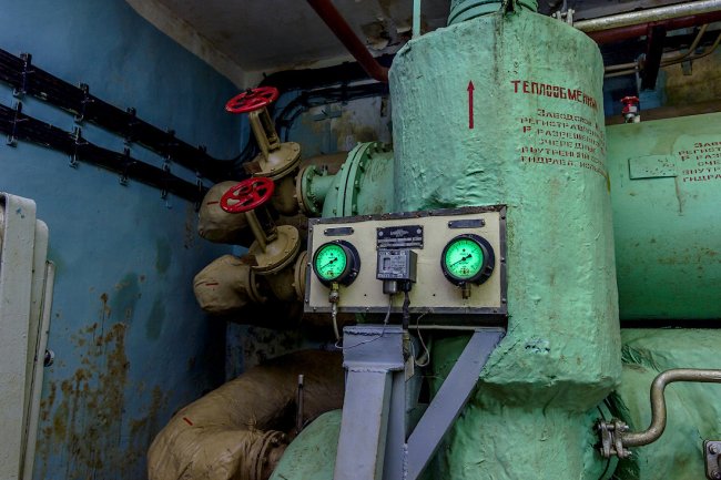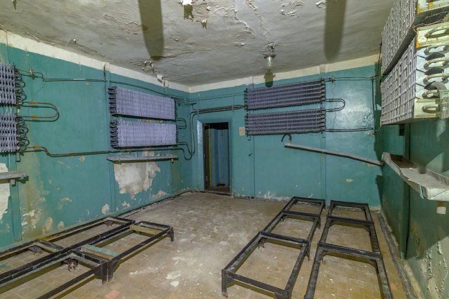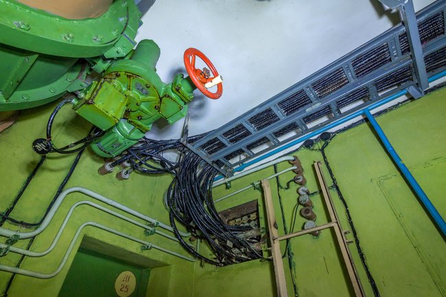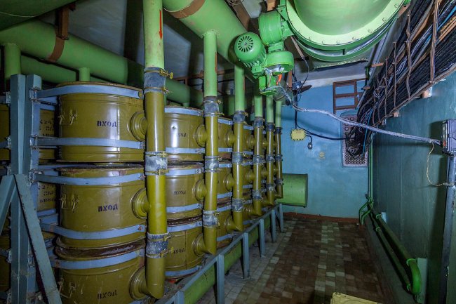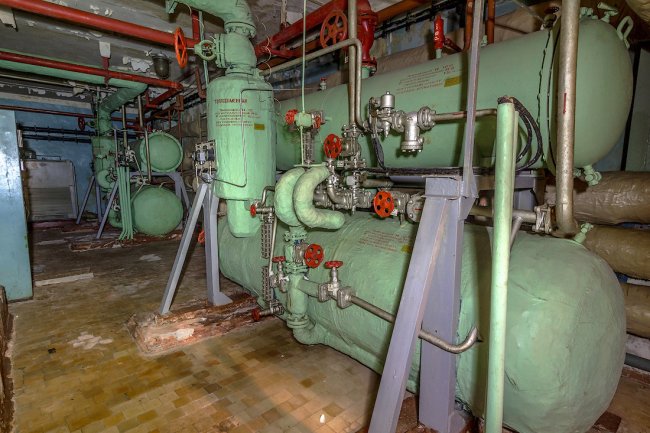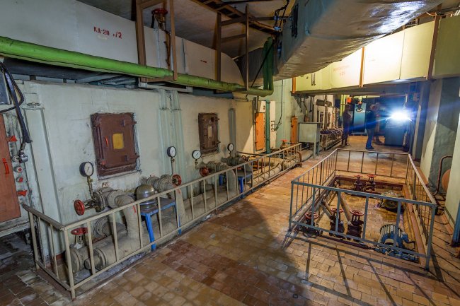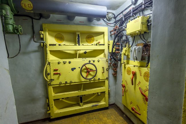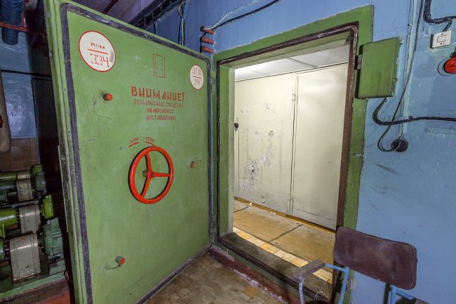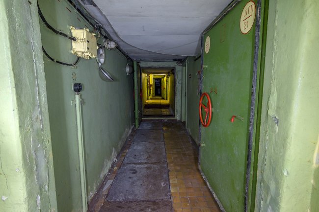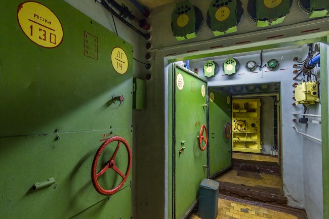 8. Дальше располагалась система шлюзовых камер. Внутри объекта поддерживалось давление выше атмосферного — для защиты от проникновения боевых отравляющих веществ. При прохождении камер давление постепенно повышалось.