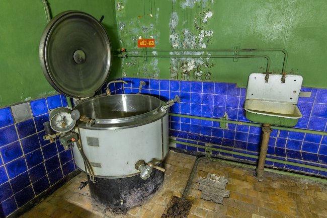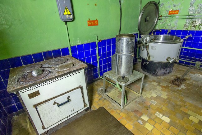 22. В мирное время гарнизон питался в столовой военного городка, дежурным приносили еду в термосах. Но на случай боевых действий был предусмотрен пищеблок.