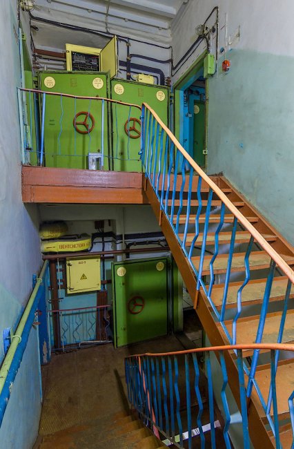4. В конце лестницы вход в объект преграждает массивная защитная дверь (ДЗ), способная защитить от ударной волны атомного взрыва. Её масса 3 тонны. Для того, чтобы попасть внутрь, нужно было снять трубку телефона и назвать пароль часовому по ту сторону затвора.