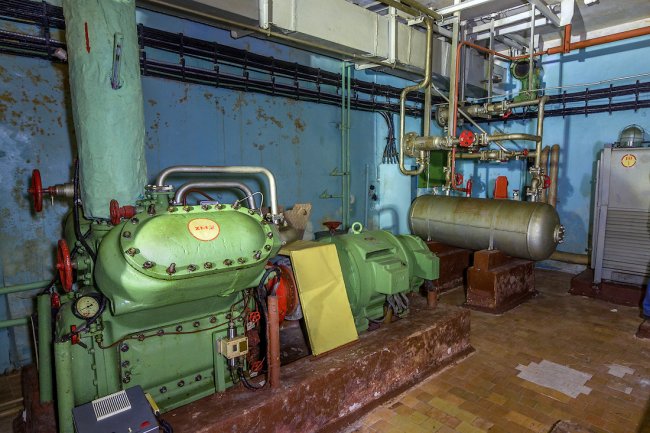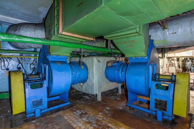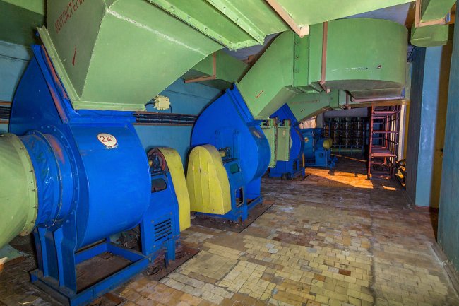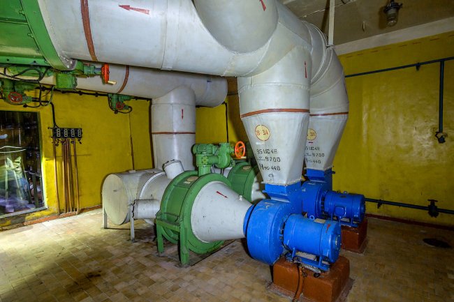 70. В машинном зале установлены огромные вытяжные установки, происходила постоянная рециркуляция воздуха. Выхлопные газы по специальным трубопроводам отправлялись на охладительные машины и выводились с объекта.