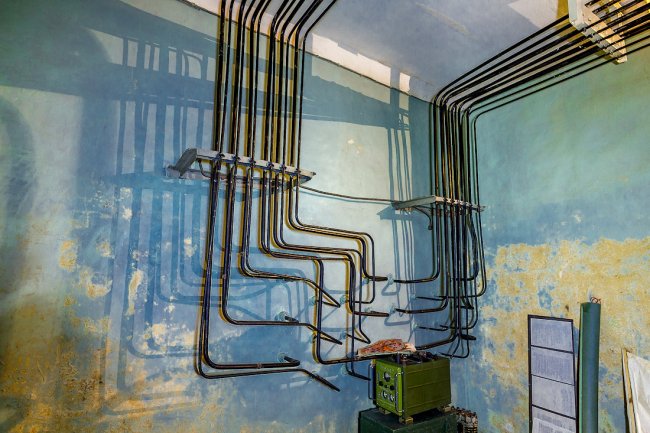 11. Вокруг каждого бункера находилось антенное поле. Связь с антеннами и ближайшими объектами осуществлялась через кабельные линии. Все кабели были оборудованы двойными герметичными оболочками, внутри которых поддерживалось повышенное давление. Любые повреждения кабеля фиксировались манометром, установленным внутри бункера. Это позволяло оперативно контролировать состояние проводных линий связи и своевременно устранять неполадки.