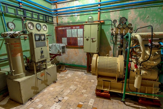 66. Они обеспечивали автономное электропитание объекту и военному городку в случае выхода из строя силового кабеля с ближайшей подстанции. Однажды генераторы объекта даже обеспечивали электричеством соседний райцентр с населением 8 тысяч человек. Все три генератора никогда не работали одновременно, система всегда была резервирована.
