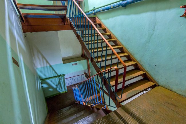 2. Внутри домика скрывается бетонная лестница.