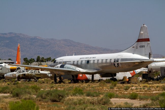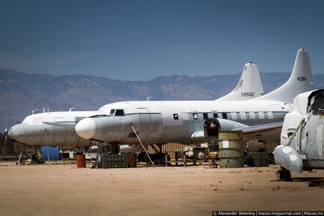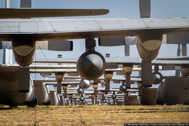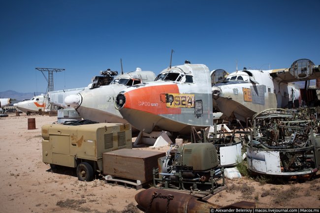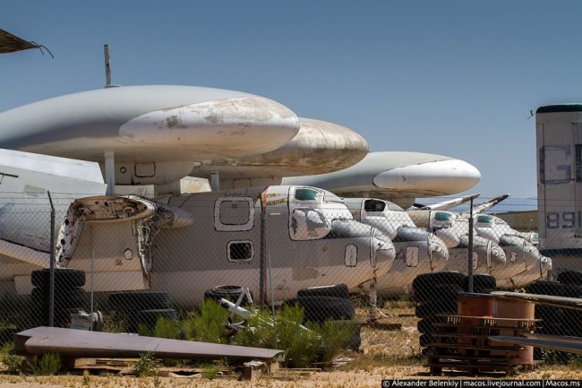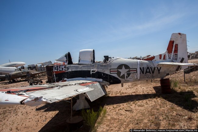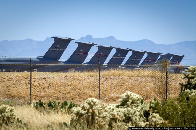 Здесь догнивают и доживают свой век только военные самолёты. Начиная со второй мировой войны все списанные, но не развалившиеся борта свозили сюда, в пустыню, на базу ВВС. Вот и накопилось.