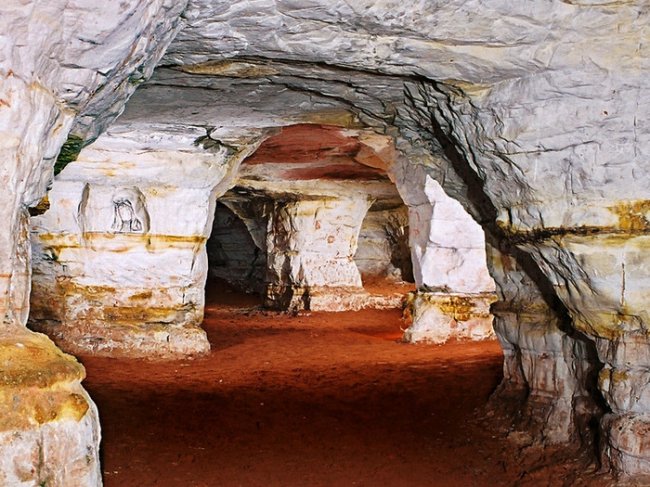 Пещерная система возникла благодаря добыче кварцевого песка с 18-го по 20-й век. В 1922-м году шахты закрылись, и пещеры забросили.