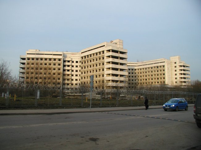 Ховринскую больницу начали строить в 1980-м году на месте кладбища. Через пять лет строительство прекратилось, а огромное недостроенное здание бросили. Сейчас подвалы затоплены, а здание медленно оседает под землю.