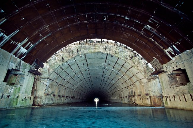 В убежище жутко. Центральная его часть — это два параллельных туннеля, соединённых проходами. Оба туннеля, настолько огромных, что туда легко войдёт подводная лодка, затоплены водой. Всего в убежище ведёт восемь входов. Оценить его истинные размеры сложно: многие проходы затоплены, и неизвестно, куда они ведут. Да, ещё одно: на территории военной части есть источники радиации и повышен радиационный фон, так что без специального костюма здесь лучше не гулять.