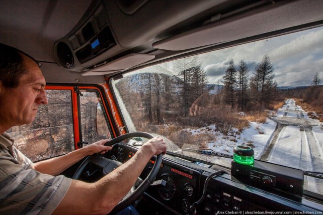 Я впервые ехал на Камазе-вахтовке, остался в абсолютнейшем восторге. Об этой машине будет отдельная статья, у нее даже есть функция подкачки колес прямо из кабины, в общем крутяк.