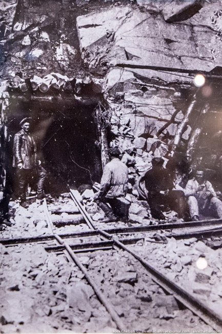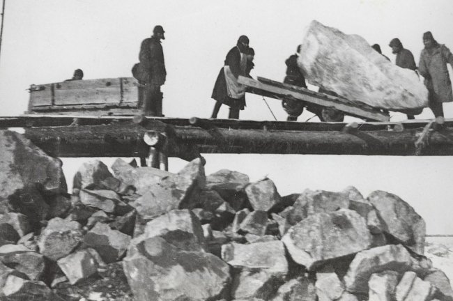 Вы только представьте себе — все эти холмы породы в центре кадра образованы заключенными в процессе работы. Почти все делалось вручную!