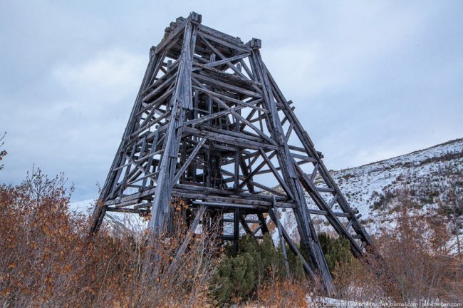 А эта конструкция — «лифт» для спуска-подъема руды, которая впоследствии выгружалась на самосвалы и отвозилась на перерабатывающие фабрики: