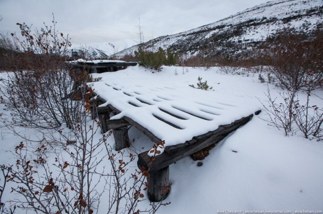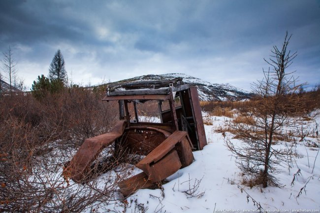 Это «Днепровский» рудник — один из сталинских лагерей на Колыме. 11 июля 1929 было принято постановление «Об использовании труда уголовно-заключенных» для осужденных на срок от 3-х лет, это постановление стало отправной точкой для создания исправительно трудовых лагерей по всему Советскому Союзу. Во время поездки в Магадан я побывал в одном из наиболее доступных и хорошо сохранившихся лагере ГУЛАГа «Днепровский» в шести часах езды от Магадана. Очень тяжелое место, особенно слушая рассказы о быте заключенных и представляя их работу в условиях непростого климата здесь.