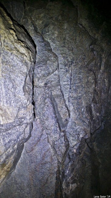 В одном из коридоров в стене нашелся пролом, внутри которого видны гранитные стены