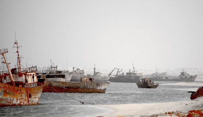 Нуадибу с населением почти 1000 человек является вторым по величине городом в Мавритании – одной из самых бедных стран мира. Городской порт, расположенный в широком заливе, прекрасно защищает корабли от приливов Атлантического океана, а также открывает путь к лучшим рыболовным угодьям мира. Через порт экспортируют железную руду, благодаря чему он является важным центром для торговли. В 1980-х местные жители начали оставлять на мелководье залива старые, ненужные лодки и более крупные суда. Вскоре в Нуадибу стали оставлять ненужные суда со всего мира. Местные власти были только рады – за эту возможность им давали взятки. Сейчас на мелководье ржавеет огромное количество кораблей – от рыболовных траулеров до военно-морских крейсеров. Один из самых крупных кораблей – «Юнайтед Малика». Он сел на мель в 2003 году, перевозя рыбу. Члены экипажа (17 человек) были спасены мавританским флотом, но с тех пор корабль так и не убрали. Несмотря на меры по предотвращению дальнейшего «сброса» судов, их число продолжает расти, хотя и не так быстро, как раньше. У местных жителей был небольшой стимул разбирать корабли на металлолом – этот город является одним из крупнейших экспортеров железной руды. Но все не так плохо: затонувшие корабли – прекрасные места для нереста рыбы, и местные рыбаки часто растягивают между ними свои сети. Сейчас правительство собирается использовать корабли, чтобы сформировать искусственный глубоководный риф. Правда, об этих планах было объявлено в 2001 году, но с тех пор для их реализации ничего не было сделано.