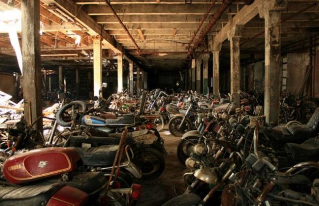 В Локпорте Нью-Йорка ранее был старый склад, который стал настоящей легендой в среде мотоциклистов. Склад когда-то принадлежал человеку по имени Кол, который владел несколькими салонами мотоциклов. Покупая дешевые японские мотоциклы и сломанные, он скоро накопил огромное количество транспортных средств. В 1970-х годах для хранения своей огромной коллекции Кол купил специальное помещение, а в 1997 году продал ее вместе с содержанием. Покупатель, которого звали Фрэнк, собирался использовать склад для продажи деталей мотоциклов. Тем не менее, здание пришло в упадок, и Фрэнк не смог окупить затраты на его реставрацию. В конце концов, на склад был наложен арест местными властями, из-за чего больше никого не пускали посмотреть на коллекцию. К ноябрю 2010 года большинство мотоциклов было убрано со склада, при этом большая их часть пошла на металлолом. Фотографии кладбища впервые появились в апреле 2010 года на Flickr, в результате чего энтузиасты мотоциклов стали искать это кладбище, а некоторые даже успели купить редкие мотоциклы и запчасти. Фотограф Крис Сьюард как нельзя точно охарактеризовал это место, сказав: «Это, безусловно, одно из самых жутких и странных мест, в которых я когда-либо бывал».