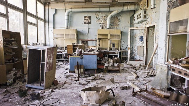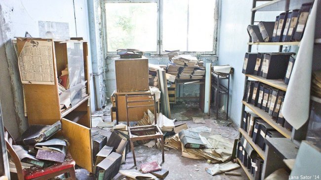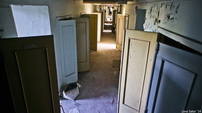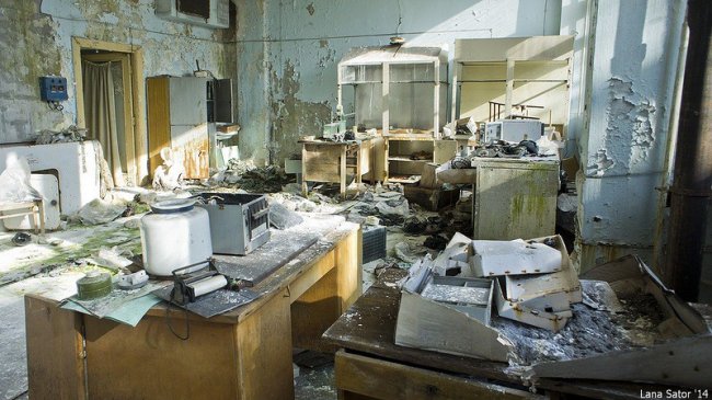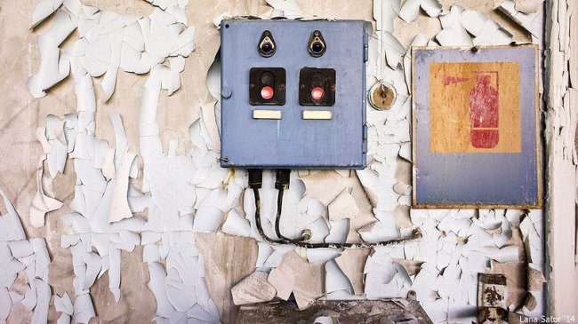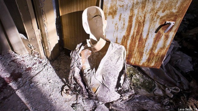 Здание брошено довольно давно, поэтому почти все помещения покрыты такой вот пылью