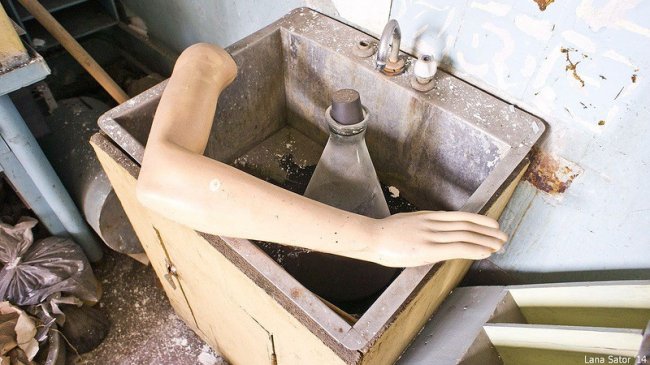 Повсюду валяются части манекенов, всякие руки, торсы и отдельные головы