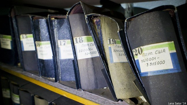 А в этом помещении хранились папки с патентами на аналогичную продукцию в других странах.