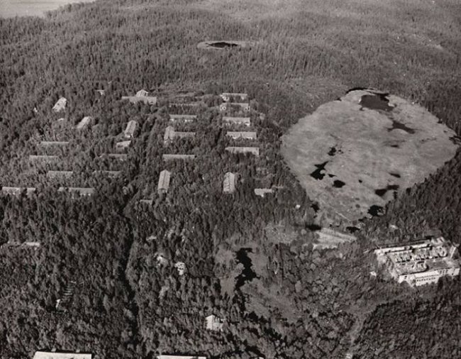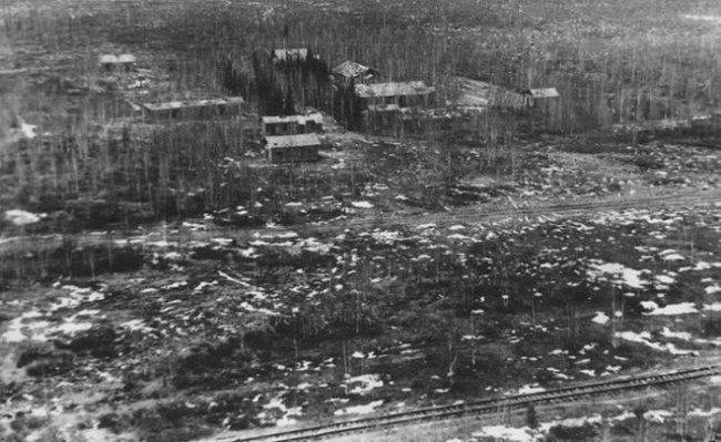 А так выглядел раньше и выглядит сейчас поселок Ермаково, один из крупнейших на стройке (до 15 тыс. жителей), расположившийся на левом берегу Енисея, недалеко от Игарки. Здесь фактически находился штаб стройки №503 (восточной половины дороги), тут успели даже построить электростанцию, депо, клуб, поликлинику, шесть магазинов, гостиницу, школу-десятилетку, дом младенцев, куда сдавали детей заключенных матерей, ресторан и некоторые другие элементы обычной на большой земле, но такой редкой здесь инфраструктуры.