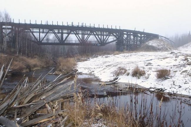 Малые реки дорога пересекала по деревянным мостам. Мосты через крупные реки Барабаниха и Маковская сооружались куда более капитально: из металла на бетонных опорах длиной в 60 и 100 метров соответственно. Впрочем, деформации и разрушения из-за таяния и последующего замерзания грунтов не избежало ни одно из сооружений, построенных по «облегченным техническим условиям».
