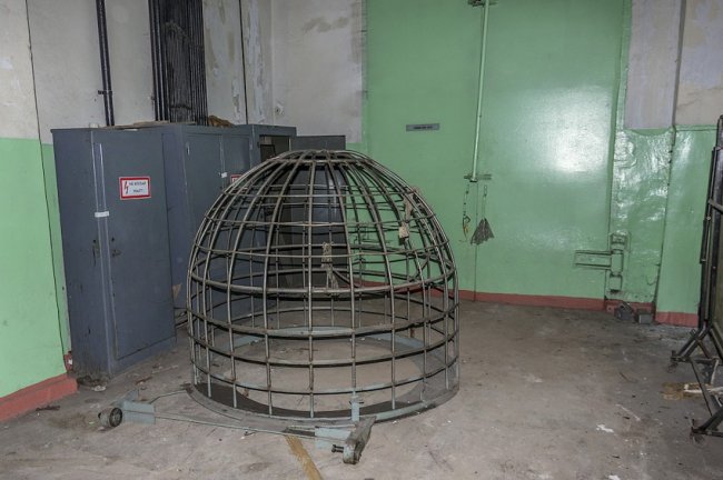 У дверей установки СД-2 стоит огромная клетка, когда-то являвшаяся частью стенда.