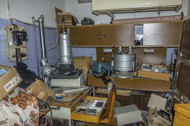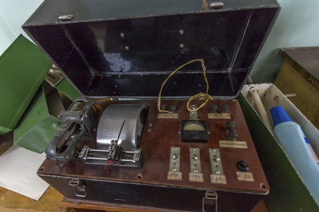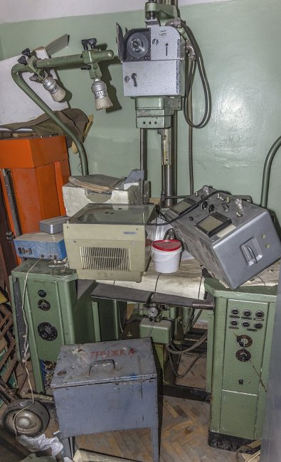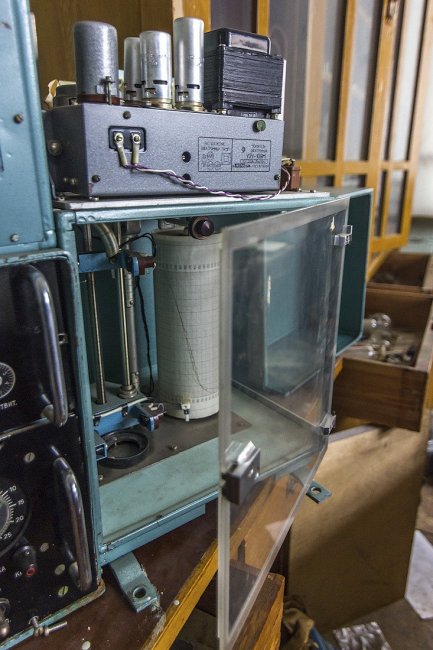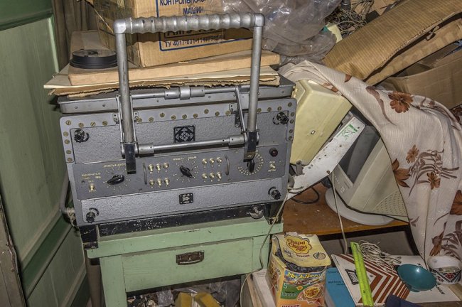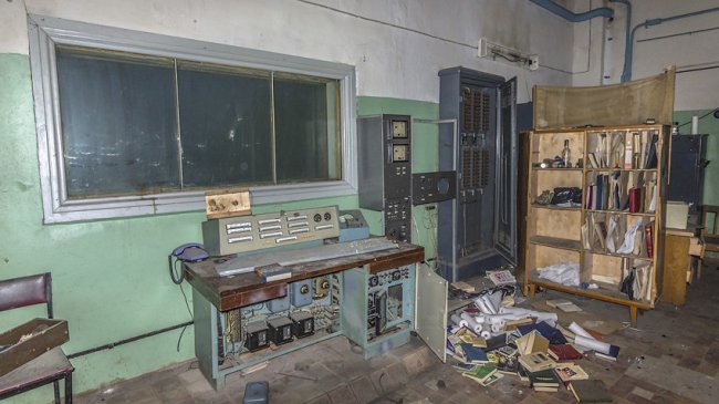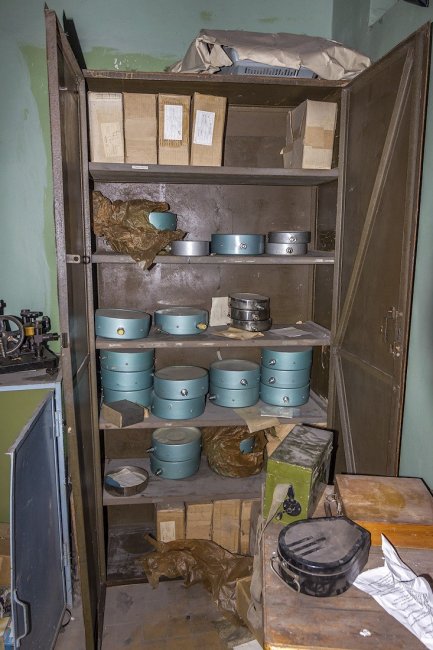 В многочисленных помещениях рядом с установкой сидели инженеры-оборонщики. Они оставили после себя целый шкаф с магнитными лентами и рулонами бумаги для записи параметров работы стендов.