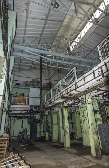 Зал двухэтажный, на специальном возвышении находились агрегаты, снизу к ним подводились коммуникации.