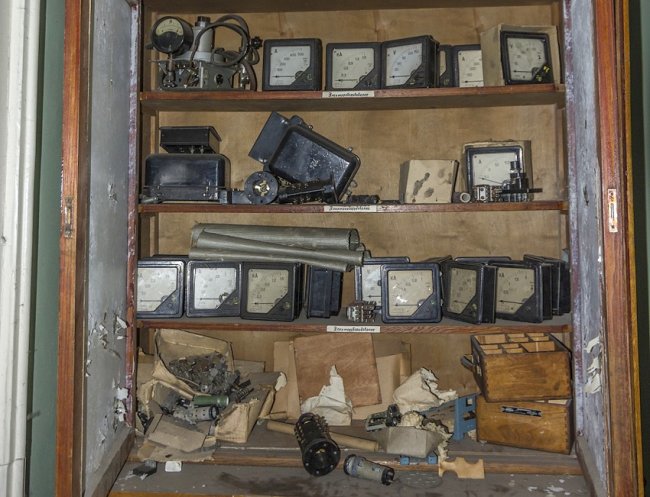 В двух шкафах сложены запасные «измерометры» к пульту. В первом — электрические.
