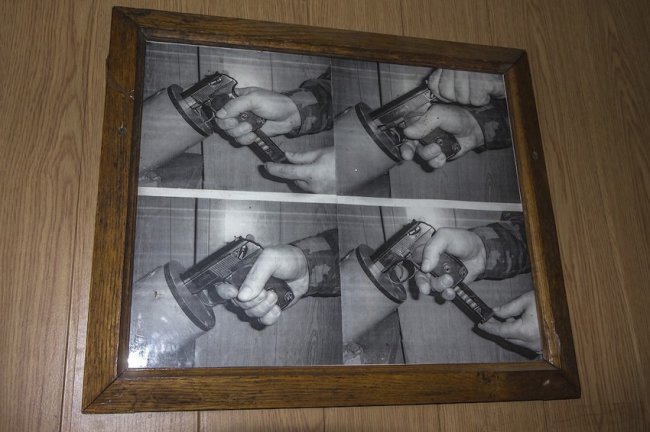 На стене будки — заключённое в рамочку напоминание о порядке заряжения-разряжения оружия при смене караула.