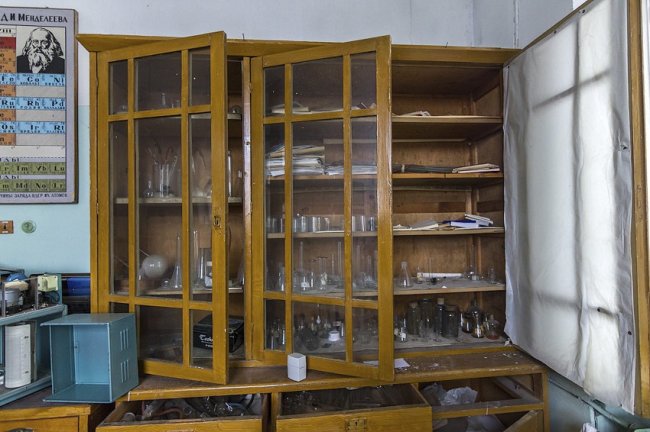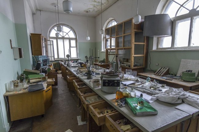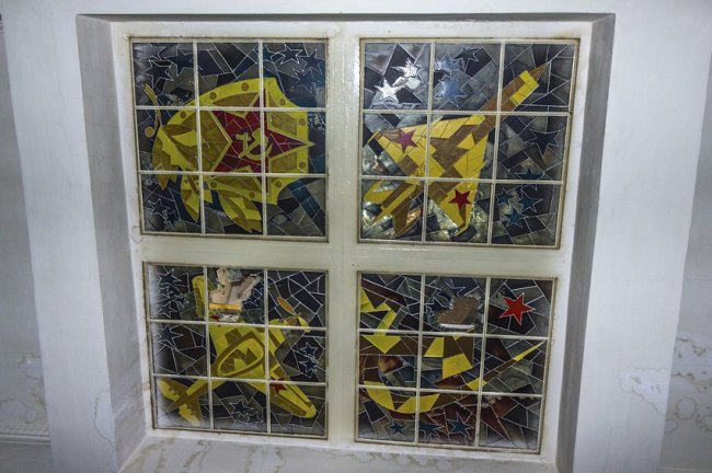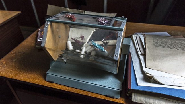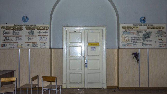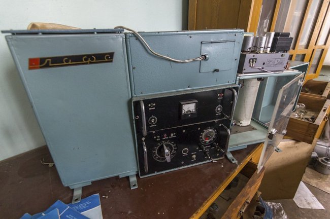 Зато за стеклянной стенкой сохранился огромный пульт управления высотной установкой.