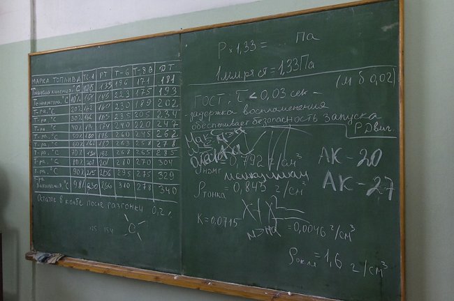 Доска всё ещё покрыта старыми записями о свойствах нефтепродуктов.