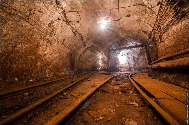 Хотелось посмотреть на добычные камеры, но пришлось довольствоваться лишь откаточными выработками.