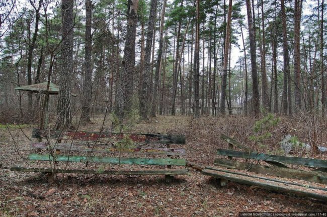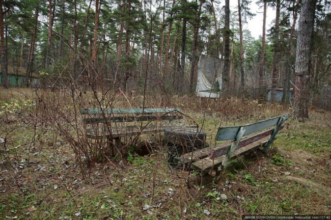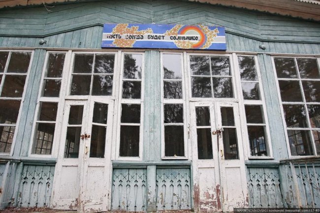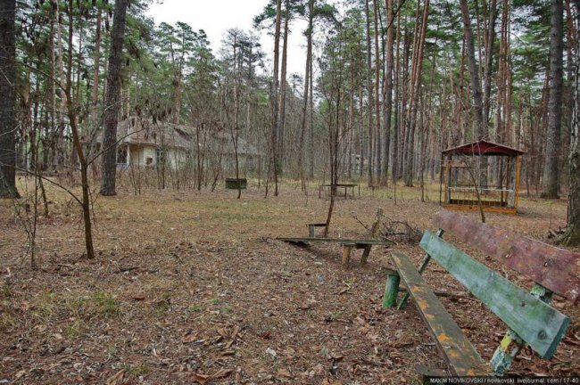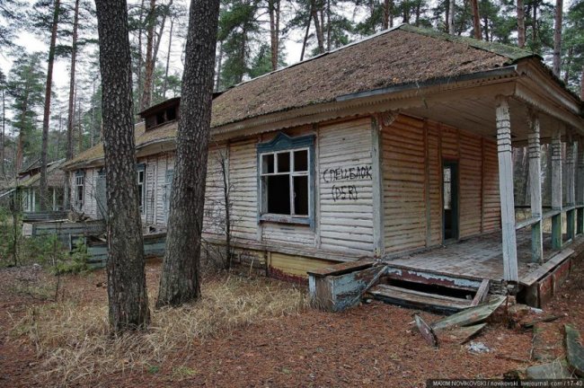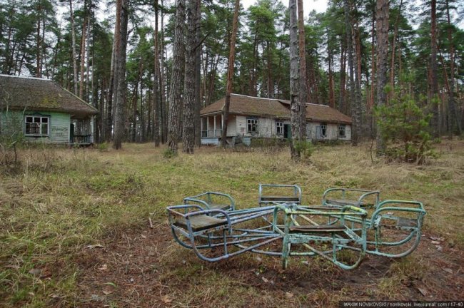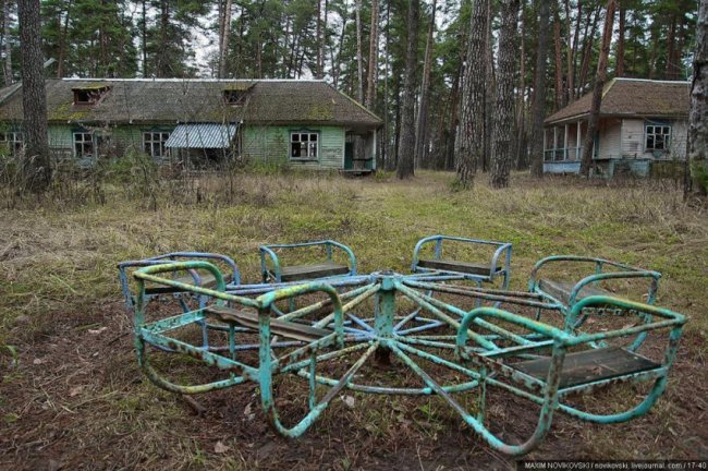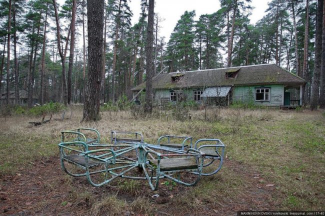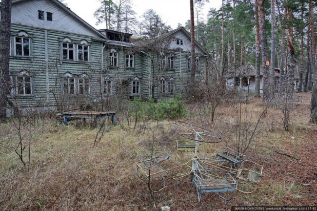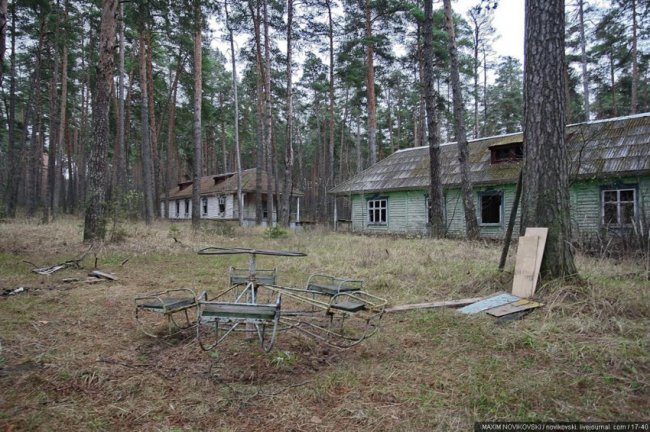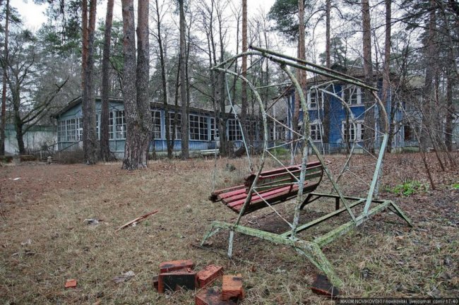 Этот некогда цветущий и наполненный детским смехом лагерь под названием «Юность» располагается около санатория «Сосновый бор», в живописном месте Рязанской области — Солотче. Сейчас он полностью разрушен и только заржавевшие детские качели и трухлявые лавочки напоминают о былом величии.