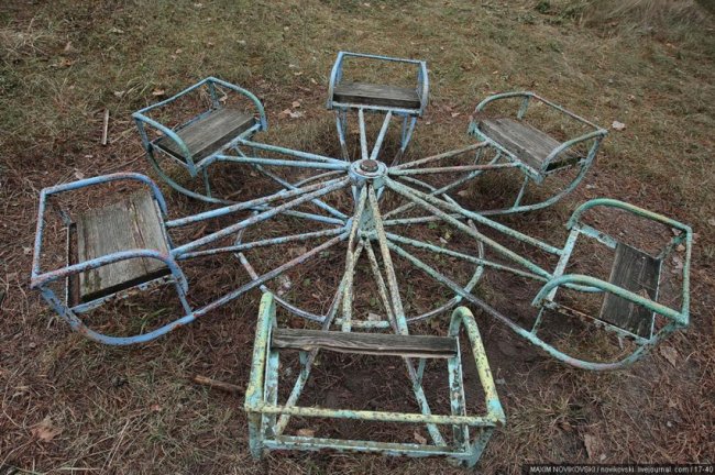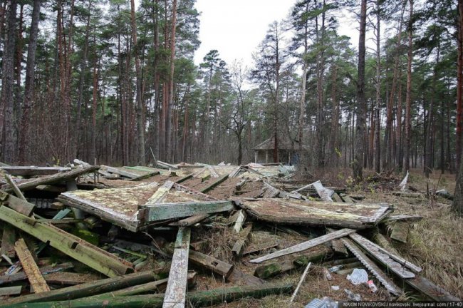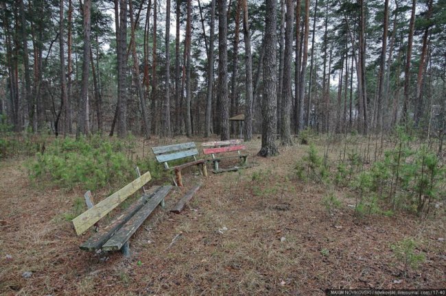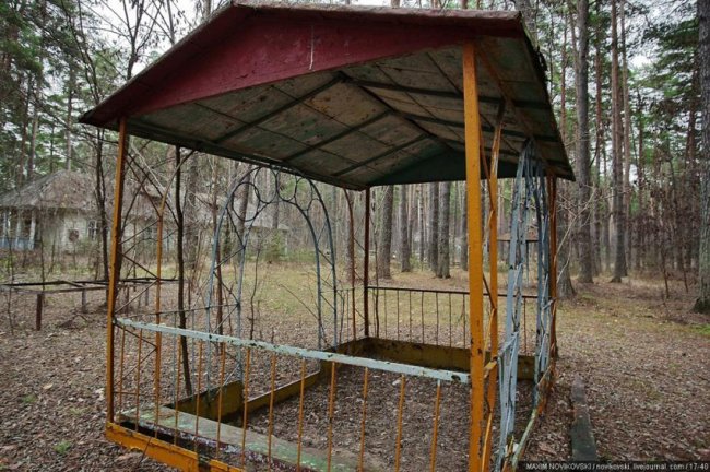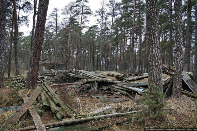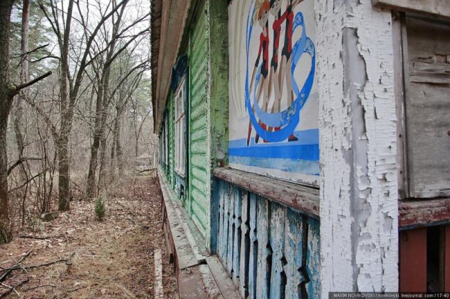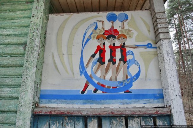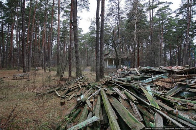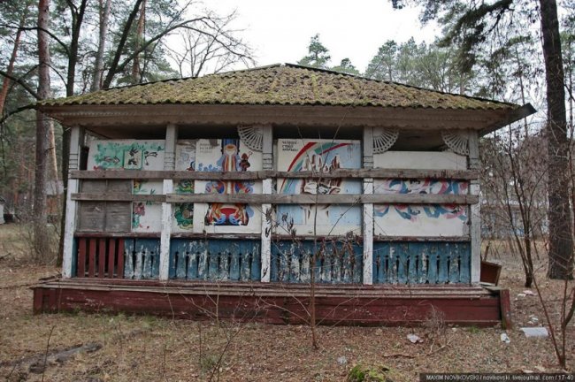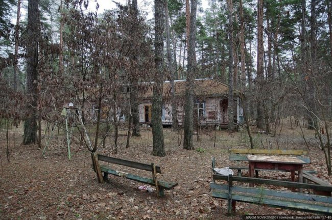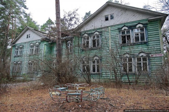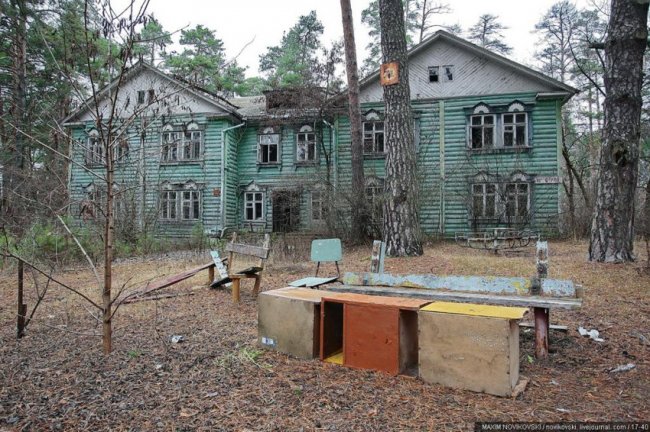 Этот некогда цветущий и наполненный детским смехом лагерь под названием «Юность» располагается около санатория «Сосновый бор», в живописном месте Рязанской области — Солотче. Сейчас он полностью разрушен и только заржавевшие детские качели и трухлявые лавочки напоминают о былом величии.