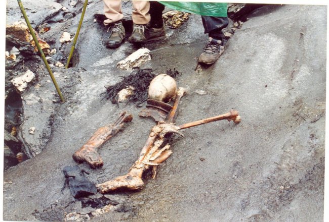 Приближаясь к озеру, они, скорее всего, спустились по склону, чтобы набрать свежей воды, когда над их головами нависли тучи. В Гималаях тогда не было убежищ, поэтому многие, а может и все они погибли. Ледяные воды озера сохранили их тела на сотни лет. У некоторых скелетов даже были волосы и ногти, а также нетронутые кусочки одежды