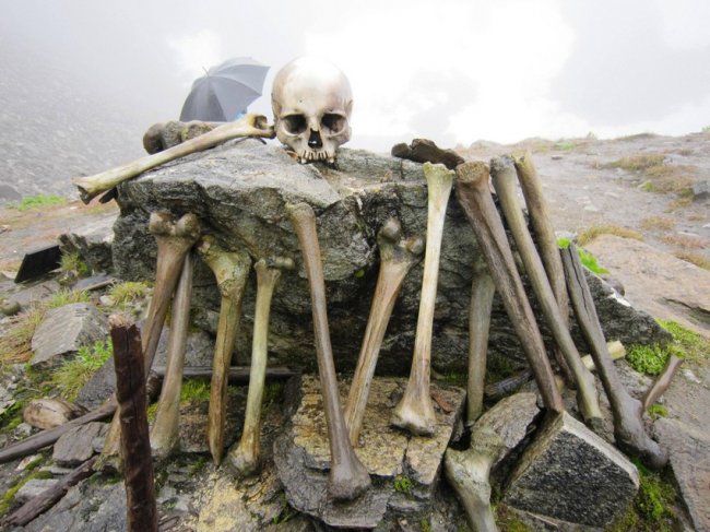 Роопкунд – это ледниковое озеро, расположенное на высоте около 5 029 м в индийском штате Уттаракханд. Когда лед тает, сотни человеческих скелетов можно увидеть под поверхностью воды или плавающими на воде. Озеро нашел в 1942 году лесник местного заповедникa