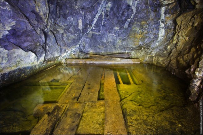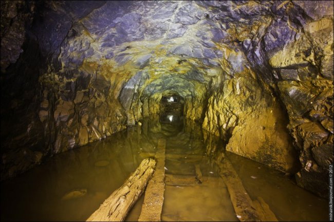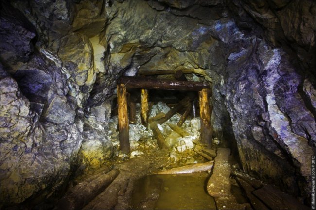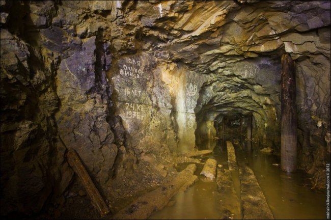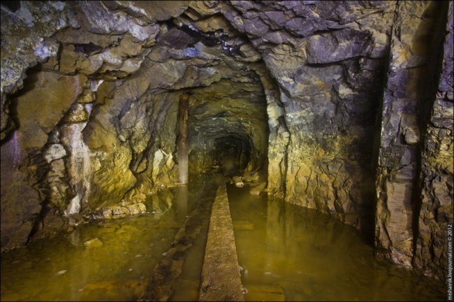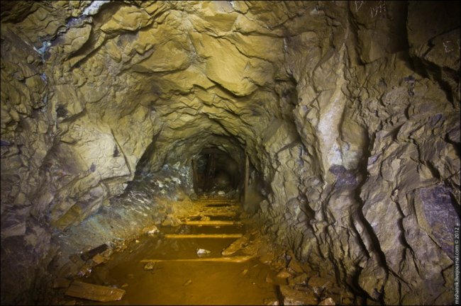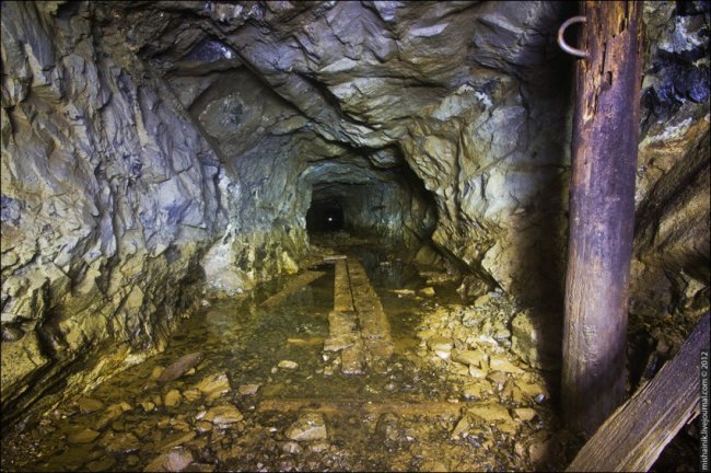 Подземелья эти действительно существуют, правда основная их часть сейчас затоплена. Нами планировалась попытка откачать затопленные штреки и спуститься туда, куда не ступала нога человека более 50 лет. Очевидно, что изначальную штольню (предположительно XIX века) прошли глубже и сбили с двумя другими — вентиляционной наверху и откаточной внизу. До этого времени вентиляция была естественной — за счет одного шурфа, выходящего на поверхность. Выработки напоминают собой расческу — по обеим сторонами штольни перпендикулярно пробиты многочисленные разведочные штреки.