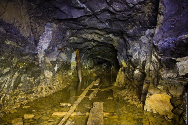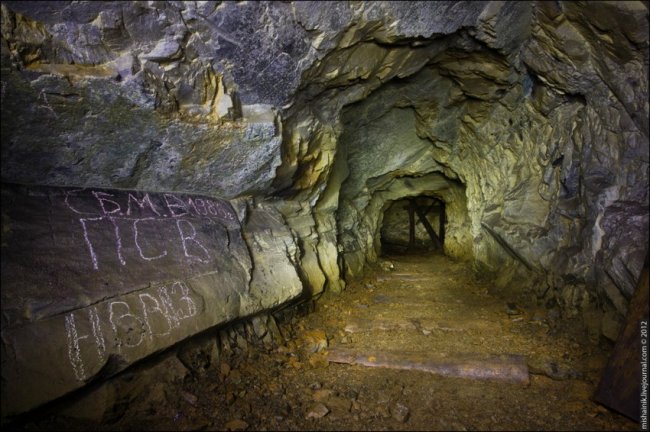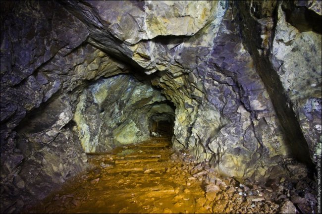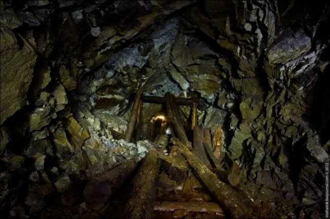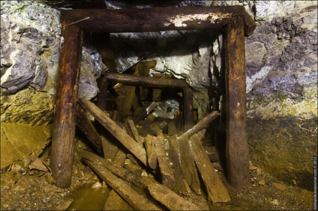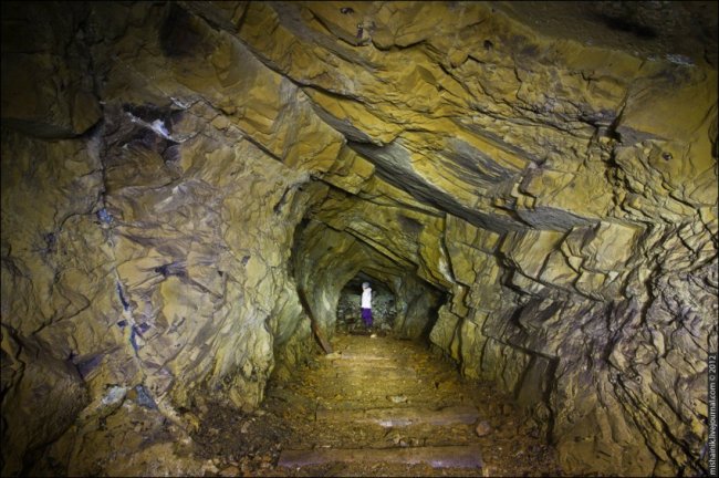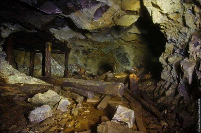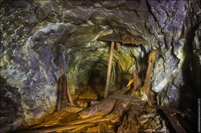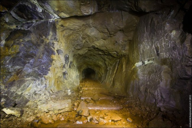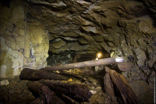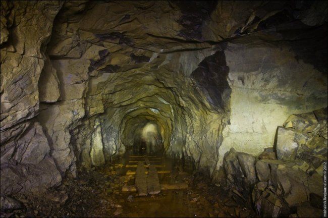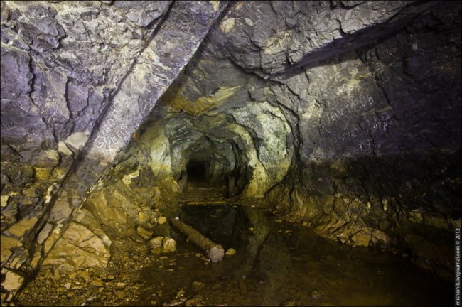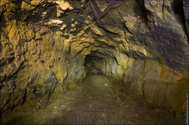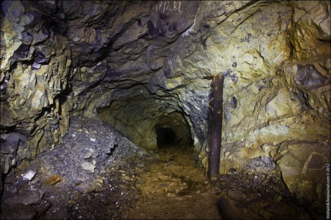 За ней штрек плавно заворачивает и идет параллельно основной штольне.