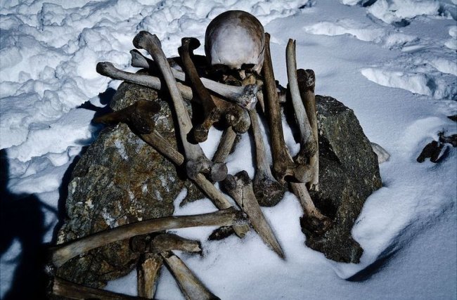 Небольшое ледниковое озеро по названием Роопкунд располагается на высоте 5029 метров над уровнем моря в Гималаях, на территории штата Уттаракханд, Индия. Начиная с конца XIX века ходили упорные слухи, что оно усеяно человеческими скелетами