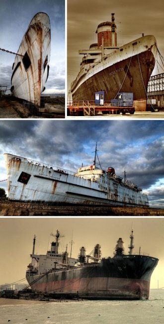 Большой лайнер, как Титаник или Британик, а особенно их смерть романтизирована Голливудом, но жизнь и смерть торговых и военных судов не такая уж и романтичная. Части корабли, покрытые ржавчиной, стоят в доках и тихих бухтах. Некоторые наполовину погрузились под воду, некоторые ещё держатся